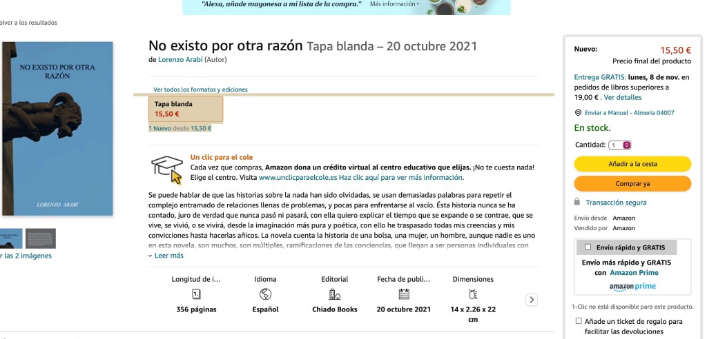 Ya está disponible en Amazón y en mi página web:https://publish.chiadobooks.es/site/userwebsite/index/id/lorenzo_arabi